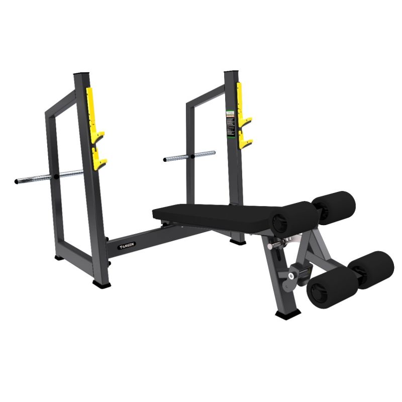 Профессиональный тренажёр для коммерческого использования A3041 Скамья-стойка для жима под углом вниз предназначен для выполнения жима штанги с отрицательным углом наклона. Тренажёр обеспечивает эффективную проработку нижней части грудных мышц, передних дельтовидных и трицепсов, а фиксирующие валики гарантируют стабильное положение тела во время выполнения упражнения.