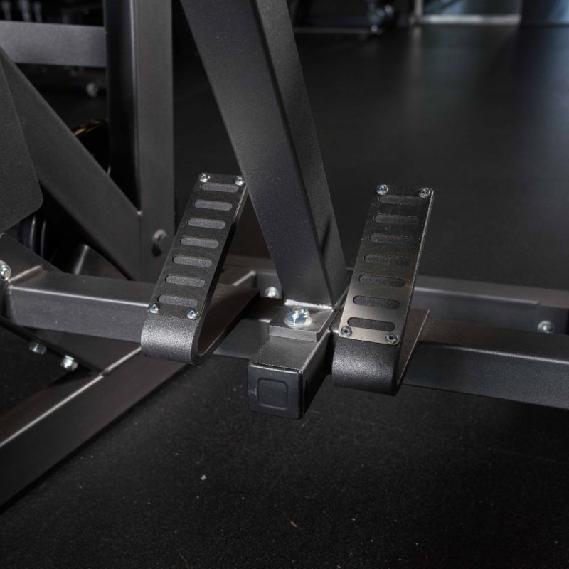 - На раме закреплены рубчатые коврики для защиты тренажера от износа и спортсмена от скольжения при выполнении упражнения.